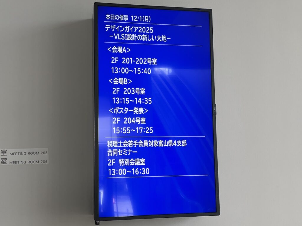 2025年12月1日(月)〜2日(火)に富山国際会議場で開催された「デザインガイア2025〜VLSI設計の新しい大地〜」に出席しました.デザインガイアは5つの研究会(情報処理学会のSLDM研究会,電子情報通信学会のVLD研究会,DC研究会,RECONF研究会,ICD研究会)の併催・連催として行っています.