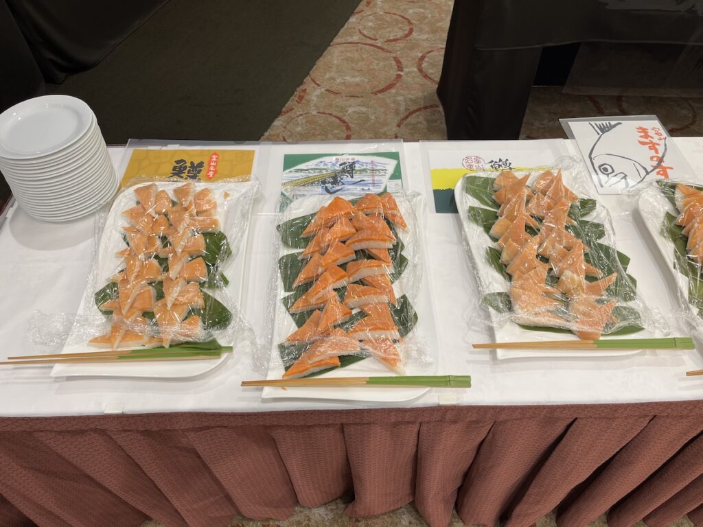 懇親会にて,富山の地酒,地魚,ます寿司,ブラックラーメン等々,富山を満喫しました.