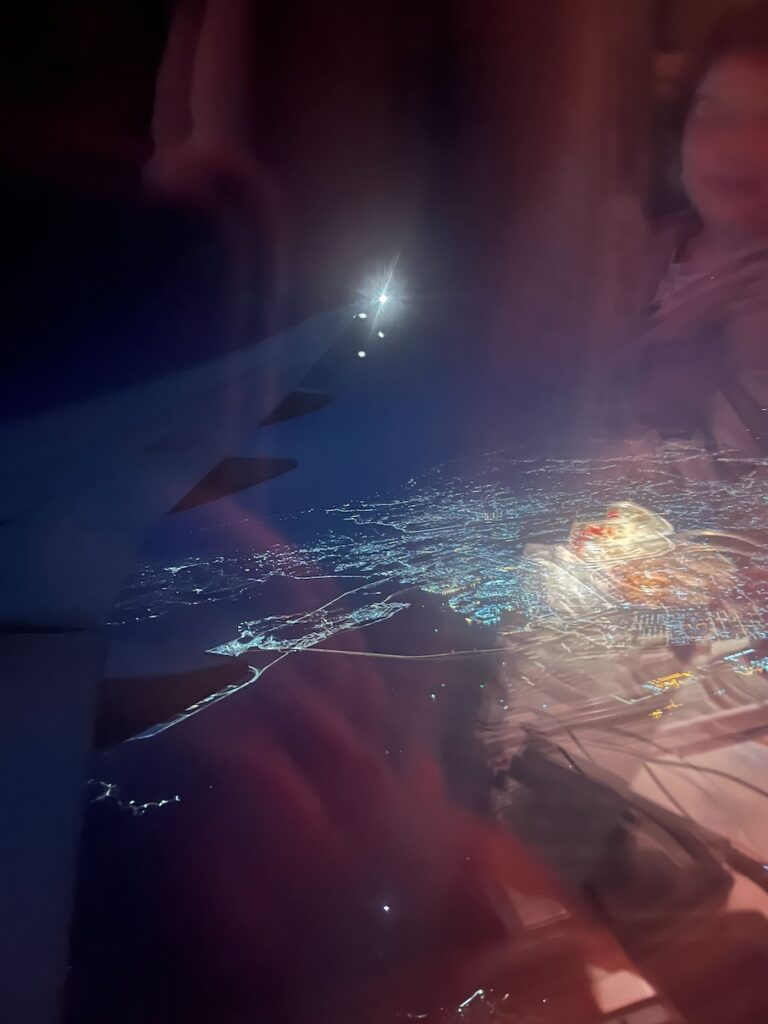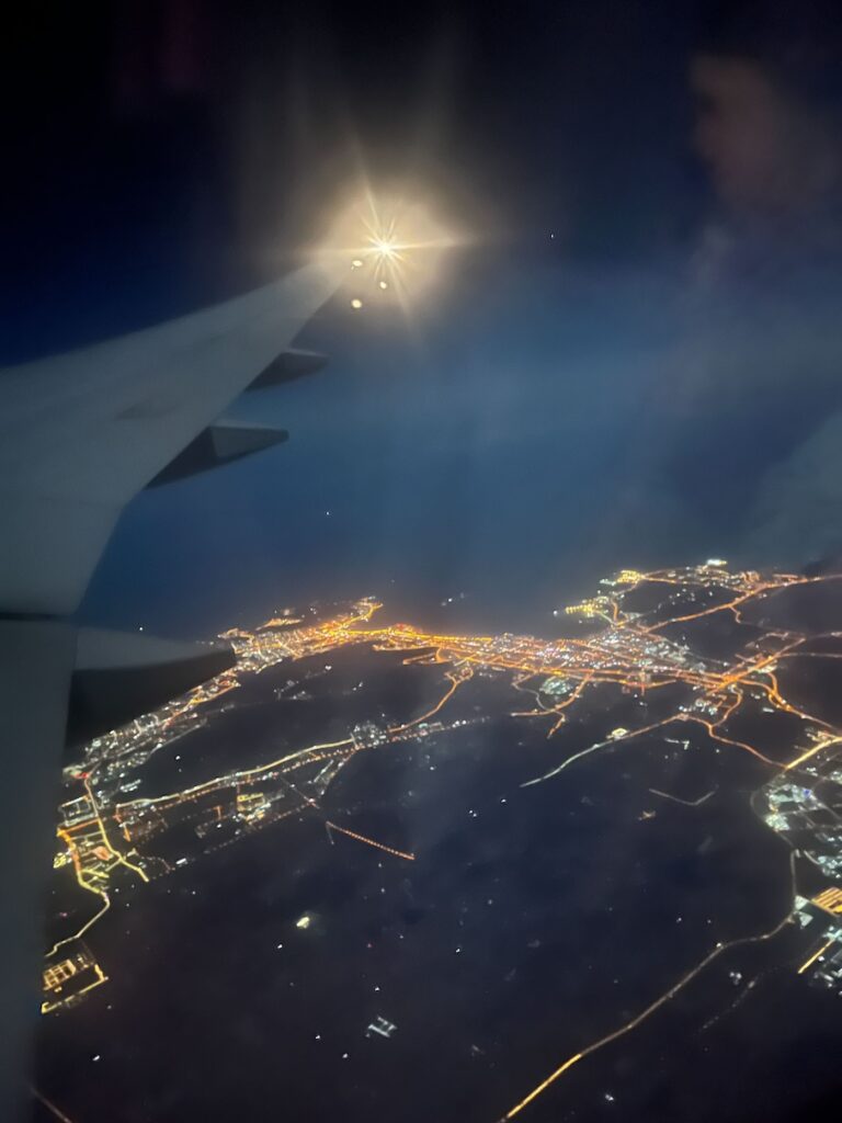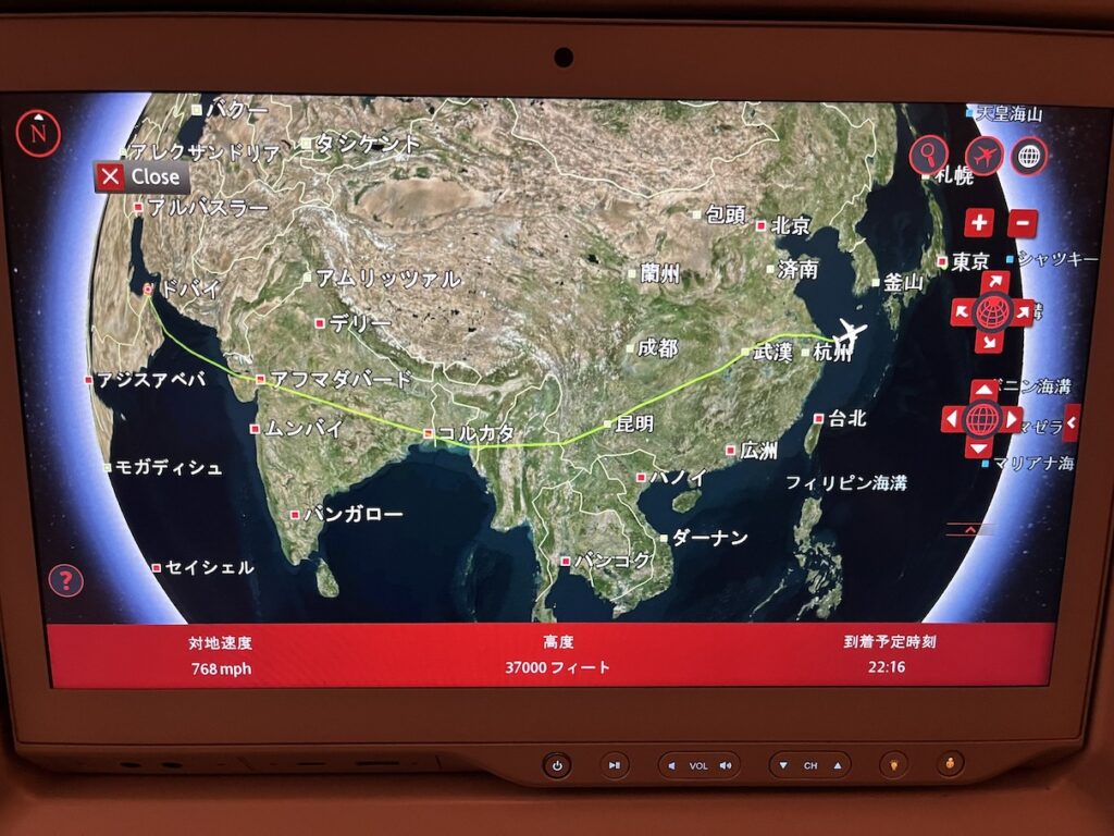 日付が変わる頃、EmiratesのB777-300ERでドバイへ向けて出発です(残念ながら?!,羽田便の使用機材はA380ではありません)。