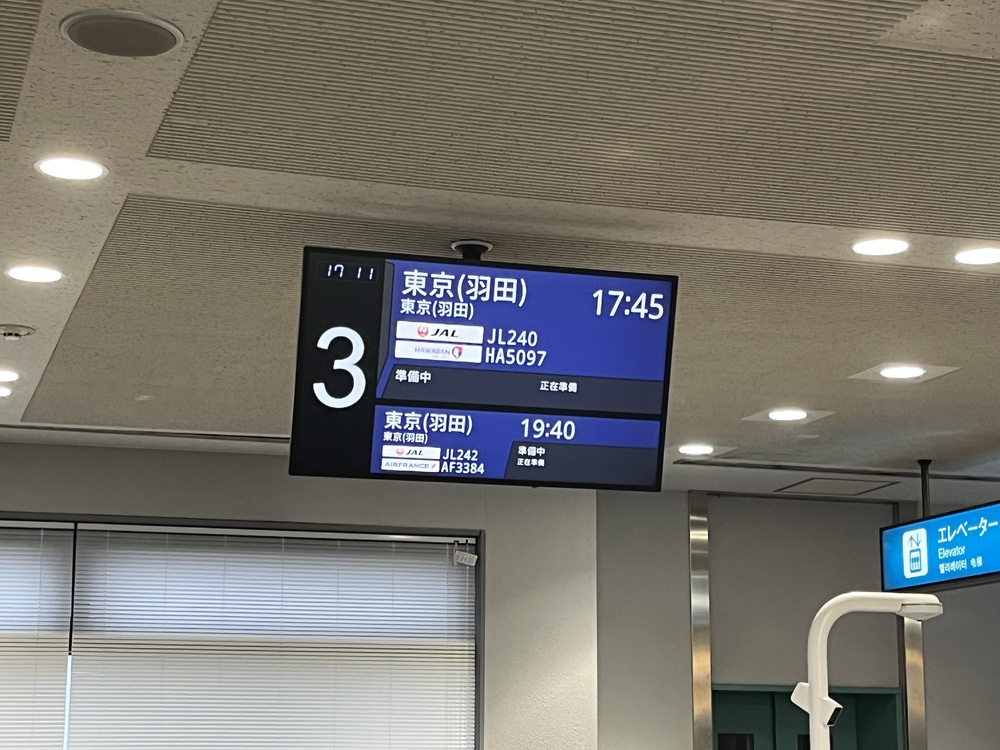 9:00に集合し、羽田空港第1ターミナルへ。 ドバイ発券のチケットを国内線用に書き換えてもらい、JAL233便で岡山へ。